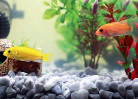 Rośliny nie tylko pełnią funkcję dekoracyjną, ale są bardzo ważnym elementem wodnego ekosystemu. Odpowiadają za utrzymanie równowagi biologicznej w akwarium – w procesie fotosyntezy pobierają szkodliwy dwutlenek węgla, produkują tlen, a ponadto pochłaniają odchody zwierząt, produkty rozkładu pokarmu dla rybek i inne obumarłe cząstki. Gdy jest dużo roślin, rybki mają zapewnione bezstresowe warunki życia, mają się gdzie schować przed „współlokatorami”. To, jakie rośliny posadzimy, zależy od naszych preferencji, ale zawsze należy stosować się do zasady: niskie z przodu, wysokie z tyłu zbiornika. Oczywiście w akwarium nie może zabraknąć rybek, ich dobór również zależy od naturalnych wymagań zwierząt oraz wielkości i typu zbiornika. Na przykład w akwariach naturalnych, gdzie nacisk kładzie się na wygląd, ładnie będą prezentować się ławice małych rybek – akwarium będzie wydawać się bardziej przestrzenne i większe niż w rzeczywistości. Na pewno nie sprawdzą się w tym przypadku rybki kopiące w podłożu czy podgryzające rośliny. Natomiast krewetki są mile widziane. Ozdobą akwarium mogą być same rośliny i ryby. Atrakcyjnie wyglądają także korzenie, kamienie czy ciekawe tło. Pamiętajmy jednak, aby dekoracje nie miały ostrych krawędzi, które mogłyby skaleczyć rybki.