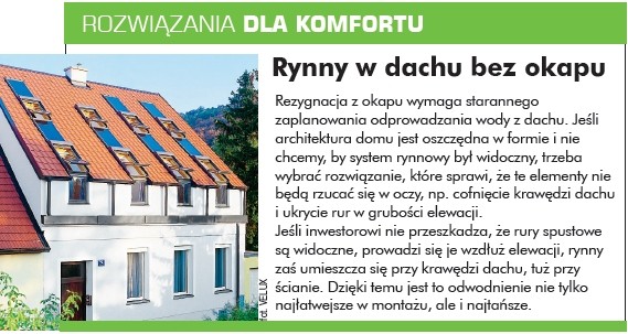 projektanta stwarza także rozwiązanie odprowadzania wody deszczowej z dachu.