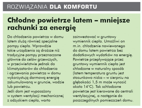 Schładzanie powietrza. Dbałość o odpowiednią jakość powietrza i komfort domowników coraz częściej skłania inwestorów do stosowania rozwiązań, które jeszcze do niedawna uważane były za luksusowe i ekstrawaganckie. Mowa tu o klimatyzatorach, które również coraz częściej są stosowane w nowo budowanych domach.