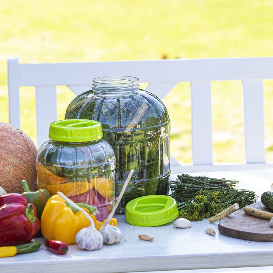 Kisić możemy niemal wszystko! Prócz klasyków, czyli ogórków i kapusty, można również kisić marchew, kalafior, buraki, rzodkiewkę, paprykę, cukinię i bakłażana. Do kiszenia nadają się także owoce m.in. cytryny, jabłka, śliwki, winogrona i oliwki, a nawet gruszki! Kisić można również soki i ziarna np. soi! W czym kisić? Polecamy przede wszystkim pojemniki i słoje, które zostały do tego celu stworzone. Posiadają one odpowiednie atesty do kontaktu z kwasami i zostały wykonane z materiału, który nie uwolni do kiszonek niebezpiecznych substancji. Tradycyjnie kiszono w kamionkach i ceramicznych pojemnikach. To nadal dobry wybór, my zachęcamy jednak również do wyboru szklanych słojów i słojów PET oraz beczek plastikowych. Te dwa ostatnie typy pojemników cechuje przede wszystkim brak obaw o ich stłuczenie. Pojemniki PET są niezwykle lekkie, nie pękają, wykonane są z bezpiecznego tworzywa i idealnie sprawdzą się do tworzenia kiszonek, a także fermentacji win czy nalewek! Zastąpienie szkła nietłukącymi się pojemnikami staje się coraz bardziej popularne. Jedyne, o czym musimy pamiętać przy wyborze tego typu pojemników to sprawdzenie, czy naczynia te są atestowane! Dzięki temu będziemy mieć pewność, że proces kiszenia przebiegnie w bezpiecznych dla naszego zdrowia warunkach! Nie wiele osób wie również, że kiszenie z rurką fermentacyjną to również ciekawy sposób na uzyskanie kiszonych warzyw i owoców. Obecna w rurce fermentacyjnej woda zabezpiecza kiszonkę przed dostępem tlenu, a sama rurka umożliwia swobodne usuwanie gazów powstających w trakcie procesu!