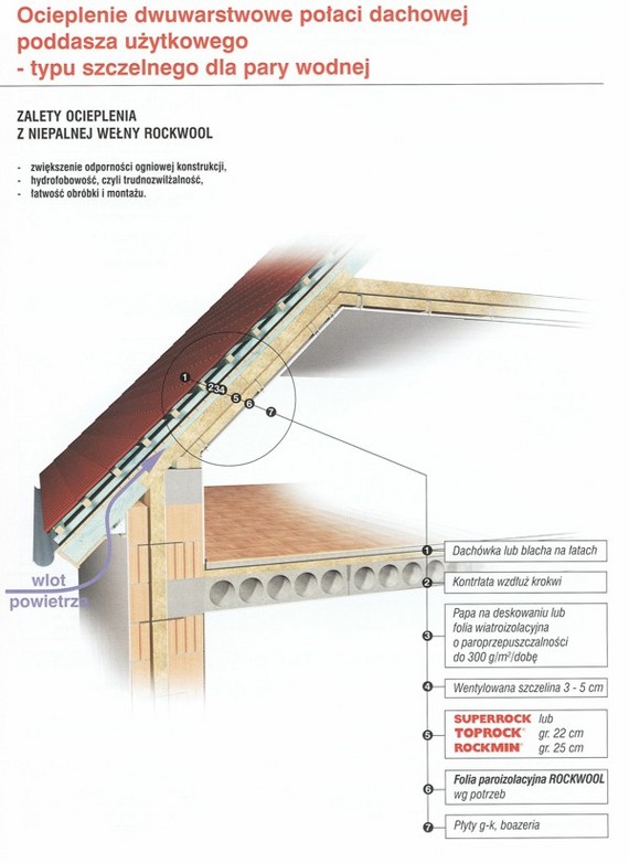 - pokrycie szczelne dla pary wodnej, gdy wentylację zapewnia pustka powietrzna,