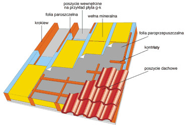 Izolację dachu stanowią: warstwa wstępnego krycia, izolacja