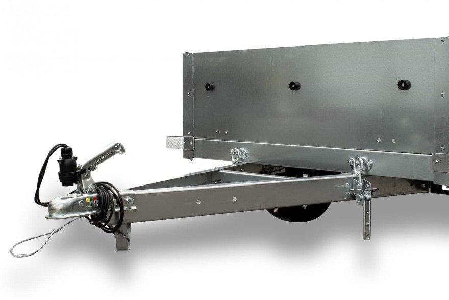 Zaczynamy od zdjęcia obudowy zabezpieczającej zaczep. Zachowajmy wszystkie elementy, ponieważ mogą przydać nam się w przyszłości. Następnie otwieramy zaczep przyczepy, pociągając dźwignię do góry. Na kulę haka zakładamy linkę zabezpieczającą. Ustawiamy zaczep przyczepki nad kulą haka holowniczego samochodu i wkręcamy śrubę koła podporowego. Gdy usłyszymy charakterystyczny „klik”, to znaczy, że śruba zamknęła się na kuli – czasza zaczepu kulowego musi obejmować całą kulę haka. O prawidłowej instalacji przyczepki samochodowej świadczy również „+” widniejący na zaczepie. Koniecznie zaciśnijmy ręcznie dźwignię! Zanim rozpoczniemy jazdę, musimy jeszcze podnieść koło podporowe. Okręcamy więc uchwyt mocujący rurę koła, podnosimy je maksymalnie do góry i przykręcamy je dokładnie.