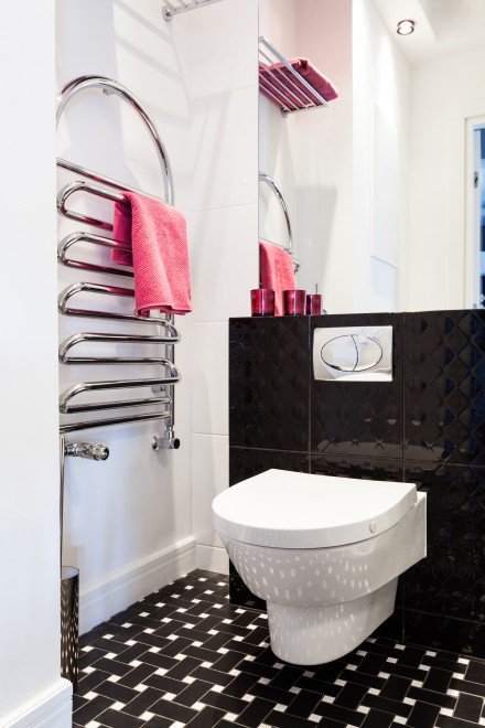Pracę zaczynamy od dokładnych pomiarów, ponieważ aby zabudowa geberitu była funkcjonalna, musimy zapewnić na stelaż podtynkowy do WC 40-50 cm szerokości, 15-20 cm głębokości i 120 cm wysokości. Oczywiście niezbędne jest również miejsce na zawieszenie miski ustępowej (standardowe wymiary miski podwieszanej to ok. 40 cm szerokości i ok. 60 cm długości) oraz wolna przestrzeń wokół niej: minimum 20 cm po obu bokach i 60 cm długości oraz 80 cm z przodu sedesu. Ponadto obudowa stelaża WC wymaga sprawdzenia instalacji wodno-kanalizacyjnej – późniejsze naprawy są utrudnione. Warto tak zaplanować wymiary zabudowy toalety podwieszanej, aby nie docinać płytek – ułatwimy sobie i przyspieszymy wykończenie łazienki, takie rozwiązanie jest również estetyczne.