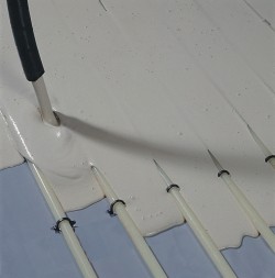 Optymalnym uzupełnieniem podłogowych systemów grzewczych są anhydrytowe wylewki samopoziomujące Knauf. Charakteryzuje je wysoki współczynnik przenikania ciepła {Xz = 1,66 - 1,87 W/mk), który ma bezpośredni wpływ na szybki i łatwy przepływ ciepła, wytwarzanego przez instalacje ogrzewania podłogowego, do pomieszczenia. Także płynna konsystencja wylewki bez pęcherzy powietrza, ułatwia przenikanie ciepła. W sumie wysoki współczynnik przenikania oraz powierzchnia bez pęcherzy powietrznych skracają okres nagrzewania pomieszczenia o połowę w porównaniu do wylewek cementowych, co w oczywisty sposób przekłada się na wymierną oszczędność energii.