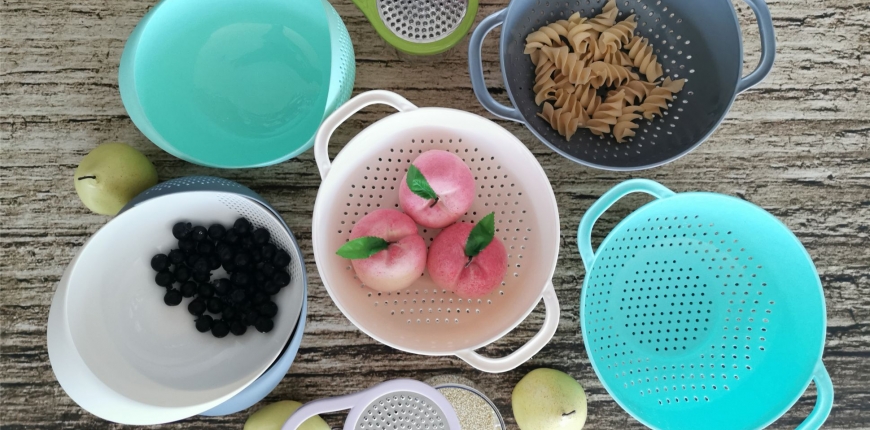 • CEDZAKI z linii VEGE, to różnorodność zastosowania. W skład linii wchodzą cedzaki standardowe z rączką, z miską, z misą obrotową którą można wykorzystać również osobno jako miskę, oraz cedzak z ociekaczem.