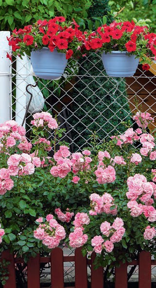 Surowy wygląd ogrodzenia z siatki możemy zakryć, obsadzając je roślinami. Do wyboru mamy wieloletnie oraz jednoroczne, które szybko oplotą płot. Najpopularniejsze wieloletnie pnącza to: bluszcz pospolity, winobluszcz pięcioklapowy, rdest Aubera, glicynia czy powojnik. Gdy lubimy różnorodność, to możemy ogrodzenie obsadzać roślinami jednorocznymi. W tym przypadku sprawdzi się np. nasturcja pachnąca, groszek pachnący, fasola, fasolnik egipski, tykwa, dynia ozdobna, asarina, wilec czy kobea pnąca. W niewielkich ogrodach, gdzie każdy kawałek ziemi jest cenny, ogrodzenie z siatki możemy wykorzystać jako podporę pnączy i krzewów owocowych, m.in. winorośli, aktinidii ostrolistnej, malin i jeżyn. Przy siatce możemy stworzyć również kolczasty żywopłot z ognika lub berberysu.
