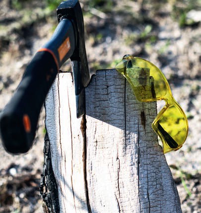 Aby uniknąć kontuzji, załóżmy kask zintegrowany z osłoną na twarz. Warto, aby był on również wyposażony w słuchawki chroniące od hałasu. Absolutnym minimum podczas rąbania drewna są okulary ochronne. Nie bagatelizujmy własnego bezpieczeństwa, gdyż wystarczy chwila nieuwagi, by doszło do nieszczęścia! Gogle czy okulary powinny być przede wszystkim dobrane do kształtu twarzy. Warto postawić na renomowane marki. Tylko wtedy okulary zagwarantują dobre doleganie do twarzy. Ponadto będą lekkie i praktycznie niewyczuwalne, a przy tym nie zaparują podczas pracy.