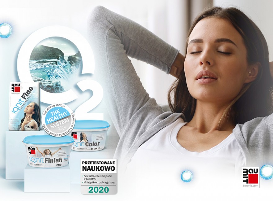 Niestety w zamkniętych pomieszczeniach stężenie jonów jest zazwyczaj bardzo niskie i nie przekracza 250 na cm³. Z punktu widzenia odpowiedniej jakości powietrza ta liczba powinna być przynajmniej cztery razy większa. Dobra wiadomość jest taka, że może taka być – i to bez dodatkowych urządzeń generujących hałas i zużywających prąd! Szczególnie, gdy stajemy przed wyzwaniem wykańczania ścian betonowych czy gipsowo-kartonowych lub remontem starych podłoży. Wystarczy farba do ścian Baumit IonitColor, wykorzystująca mechanizmy występujące w naturze oraz masa szpachlowa regulująca wilgotność powietrza Baumit IonitFinish lub Baumit IonitFino, by zwiększyć ilość dobroczynnych jonów nawet do 2000-4000 na cm³ i uzyskać jakość powietrza porównywalną do tej, której możemy doświadczyć, spacerując po lesie, brzegiem morza czy chodząc po górach.