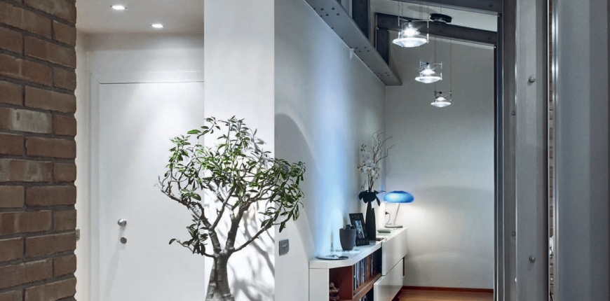 Oświetlenie szlaków komunikacyjnych ze względu na swoją specyfikę wymaga przemyślanego projektu. Trakty domowe są często długie, można z nich wejść do wielu pomieszczeń, a to sprawia, że zamiast jednego światła centralnie położonego na suficie lepiej zaplanować kilka punktów świetlnych. Często są one usytuowane tylko na ścianach, na wysokości typowej dla kinkietów lub u dołu ścian, dzięki temu podłoga na naszych codziennych trasach zostanie lepiej oświetlona. Myśląc o instalacji oświetleniowej tej przestrzeni, warto również zaprojektować większą liczbę łączników, które umożliwią nam włączenie i wyłączenie światła w kilku miejscach. Pamiętajmy, że łączniki światła powinny być zamontowane po tej samej stronie co klamka, jeśli więc jest ona z lewej strony, to włącznik powinien się również znajdować z tej strony. Łączniki najlepiej zaplanować na początku i końcu traktu na wyciągnięcie ręki, co znacznie ułatwi obsługę światła po wkroczeniu do przedpokoju czy korytarza. W wiatrołapie nie zapominajmy o montażu łącznika odpowiadającego za manewrowanie światłem zewnętrznym, przycisku do otwierania furtki czy manipulatora instalacji alarmowej. Wygodne użytkowanie zapewni ich montaż na wysokości 120-140 cm od podłogi. Do niektórych rodzajów źródeł światła niezbędny jest zasilacz, warto więc wcześniej zaplanować na niego dyskretne miejsce. Pamiętajmy, by w projekcie przedpokoju, holu czy korytarza uwzględnić montaż jednego gniazdka elektrycznego, czyli popularnego kontaktu – chociaż niektórzy zalecają w większych pomieszczeniach instalację nawet dwóch – jedno na 5 m². Najczęściej wykorzystujemy je podczas odkurzania.