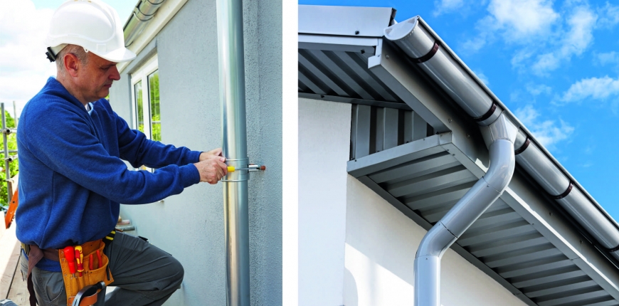 Aby system rynnowy działał prawidłowo, musi być dobrze zamontowany. Newralgiczne elementy każdego systemu rynnowego to miejsca połączeń – rynny z rynną, rynny z łukiem itd. Każde połączenie musi być podparte mocowaniem. Dzięki temu unikniemy obniżenia miejsc połączeń w stosunku do reszty systemu. Jeżeli orynnowanie zostało nieprawidłowo zamontowane, tego typu obniżenia pojawią się po okresie zimowym. Równie ważne jest zachowanie właściwego kierunku montażu zarówno rynien, jak i rur spustowych. Jeśli zamontujemy je w kierunku przeciwnym do spływu wody deszczowej, dojdzie do przelewania się deszczówki. Istotną kwestią jest także zachowanie odpowiedniej odległości systemu od końca połaci dachowej. Linia przedłużająca płaszczyznę dachu musi przebiegać 1-2 cm nad przednią krawędzią rynny. W przeciwnym razie rynny będą przejmowały śnieg z dachu. Na trwałość systemu duży wpływ ma również odstęp między hakami i obejmami. Przy zbyt dużych odstępach rynny będą się uginały. Odpowiednia odległość między hakami to maksymalnie 60 cm, a obejmami 180 cm. Niebagatelne znaczenie ma umiejscowienie rur spustowych. Powinny się one znajdować w odległości od 12 do 20 m od siebie. Montuje się je również w narożnikach i pod koszami dachowymi. Ich przekrój nie powinien być mniejszy niż 75% przekroju rynny.